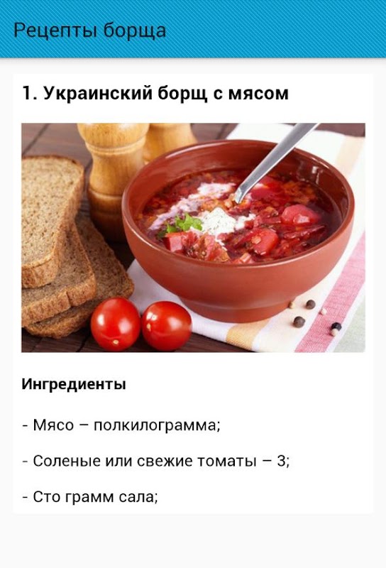 Борщ - разновидность супа на основе свёклы, которая придаёт борщу характерный красный цвет. Традиционное блюдо восточных славян, основное первое блюдо южно-русской и украинской кухни. Получило широкое распространение в национальных кухнях соседних народов: похожие блюда есть у поляков, литовцев, румын и молдаван.