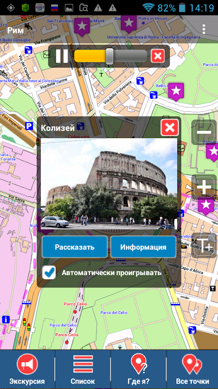 ● रोम में चलते हैं। नहीं सभी दिलचस्प स्थानों है कि देखने लायक हैं, तो आप ई पर्यटन शामिल कर सकते हैं। अपने स्वयं के निरीक्षण की योजना बना लो, बस निर्देशिका में वांछित स्थानों का चयन करके, और वे तुरंत नक्शे पर प्रदर्शित किया जाएगा। अन्य वस्तुओं के एक ही समय में, आप बस कार्ड निकाल सकते हैं।