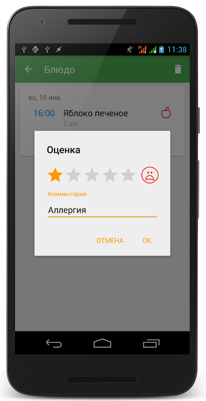 सी "घूर्णन शक्ति डायरी" को फोन में याद दिलाने और कैलेंडर दिनों की गिनती करने की आवश्यकता नहीं है - एप्लिकेशन निर्दिष्ट समय अंतराल के बाद स्वचालित रूप से मेनू में उत्पाद जोड़ देगा। प्रत्येक पकवान के लिए, यदि आवश्यक हो, तो एलर्जी प्रतिक्रिया और अनुमान लगाने का अवसर है।