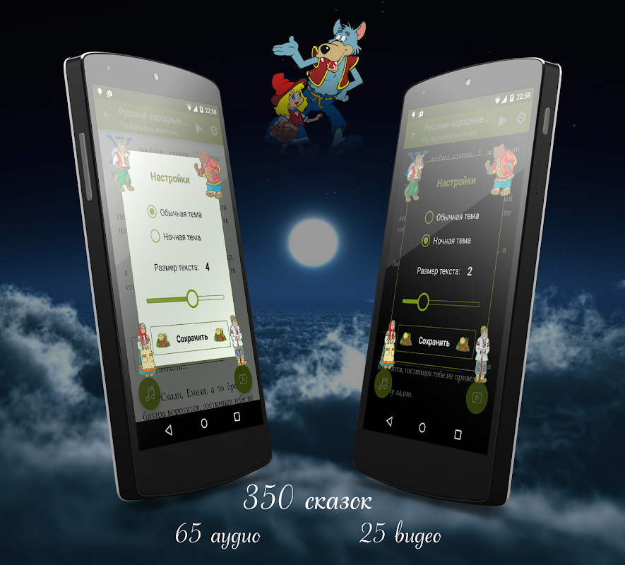 |> Возможность прослушивания та просмотра некоторых из сказок.