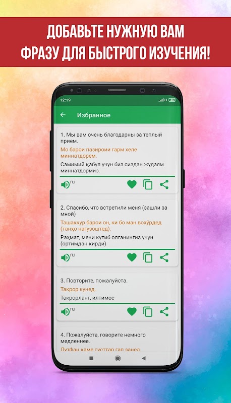 • Вы можете поделиться фразами и копировать в буфер обмена