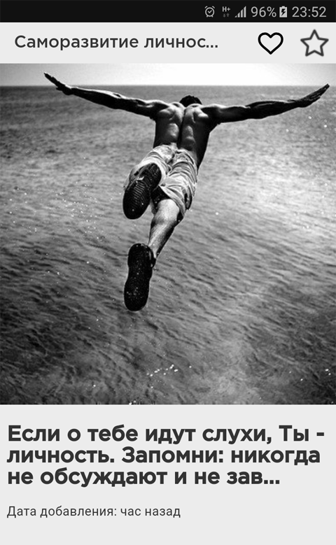 В приложение Вы найдете материалы, которые помогут разобраться в себе, в межличностных отношениях, в других людях. Статьи затрагивают разные сферы человеческой жизни: любовь, дружбу, здоровье, успех, самореализацию, межличностные отношения. Мы уверены, что каждый найдет то, что нужно именно ему.
