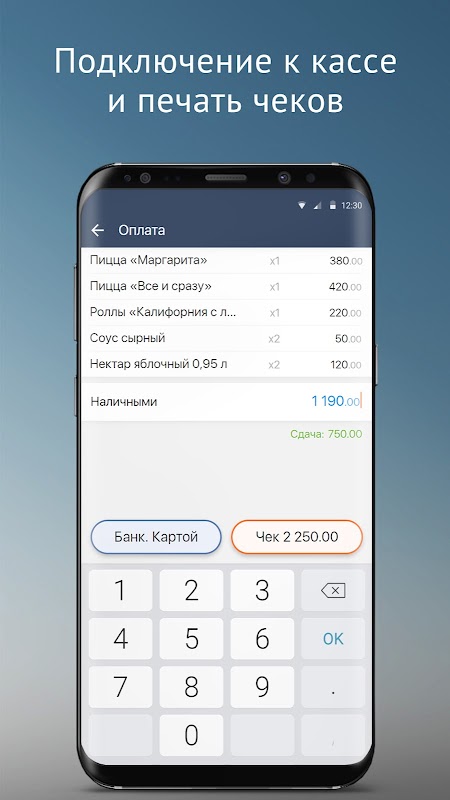 — Прием платежей — печатайте чеки прямо с телефона, подключив к нему фискальный регистратор по Bluetooth (поддержка Штрих-Нано, АТОЛ 11ф и АТОЛ 15ф).