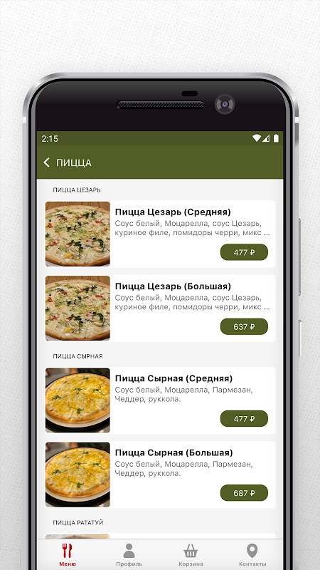पारिवारिक कैफे विवा ओलिव का मोबाइल एप्लिकेशन