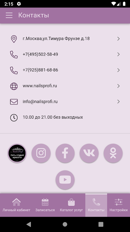नेटवर्क के ग्राहकों NailsProfi सौंदर्य स्टूडियो के लिए मोबाइल आवेदन