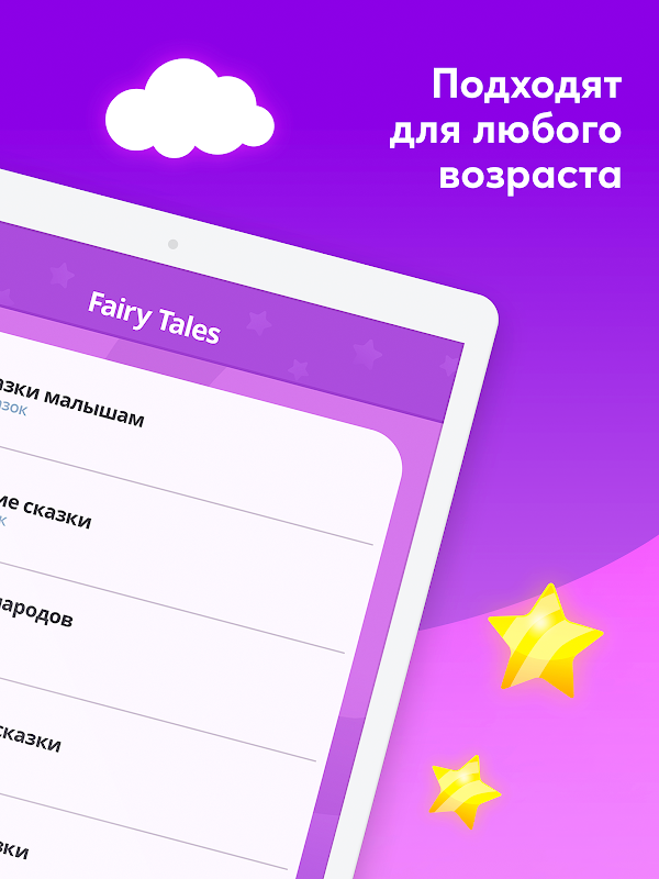 Это те самые сказки, которые читали нам наши мамы и бабушки. Теперь Вы можете познакомить и своего ребенка с этими полными мудрости сказочными историями. Традиционно эти сказки рассказывают на ночь, но Вы можете использовать их, чтобы занять своего малыша, например, в длинной поездкe. Все сказки сопровождены аудио, поэтому если Ваш ребенок пока не умеет читать, он может просто послушать сказку. Дети постарше могут слушать и следить за текстом, что на начальном этапе обучения улучшает навыки чтения. Так же мы подобрали для Вас несколько колыбельных, которые Вы сможете спеть своему малышу на ночь, и несколько классических мелодий, которые помогут ему успокоиться и заснуть.