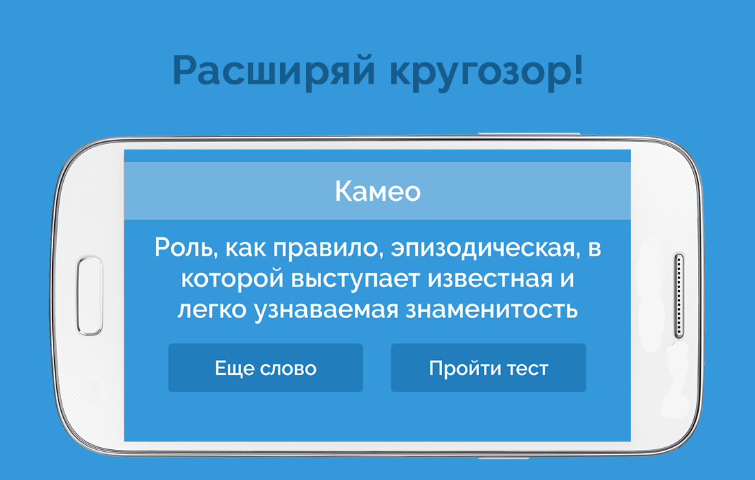 Игра "Словомер" имеет два режима: сам "Тест" и "Банк слов", где вы можете просто изучать новые слова и их определения. А опция "Слово дня" помогает за пару минут в день увеличить свой лексикон и повысить эрудицию.