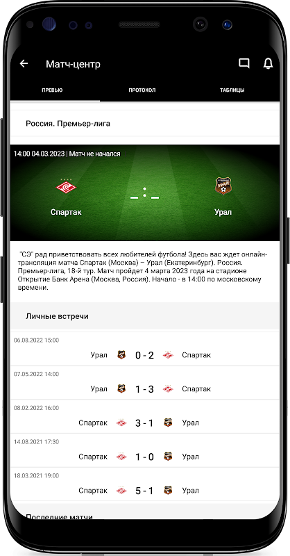 - ऑनलाइन प्रसारण और मैच के परिणाम, जहां आप लक्ष्य के लेखक, मैदान पर खिलाड़ियों के लाइनअप और लाइनअप, गेंद या पक कब्जे के आंकड़े, उल्लंघन, गोल पर शॉट और अन्य रोचक जानकारी देख सकते हैं;