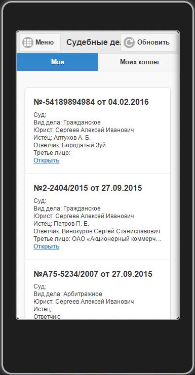 Интеграция с сайтами судебных органов, автоматическое оповещение о событиях по судебным делам.