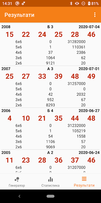 - для ознайомлення з результатами всіх тиражів лотереї УНЛ «Супер Лото» до 2056 номери включно