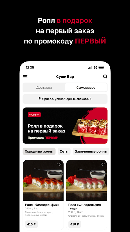 "सुशी बार डिलिवरी" यार्त्सेवो में भोजन वितरण के लिए एक आवेदन पत्र है!