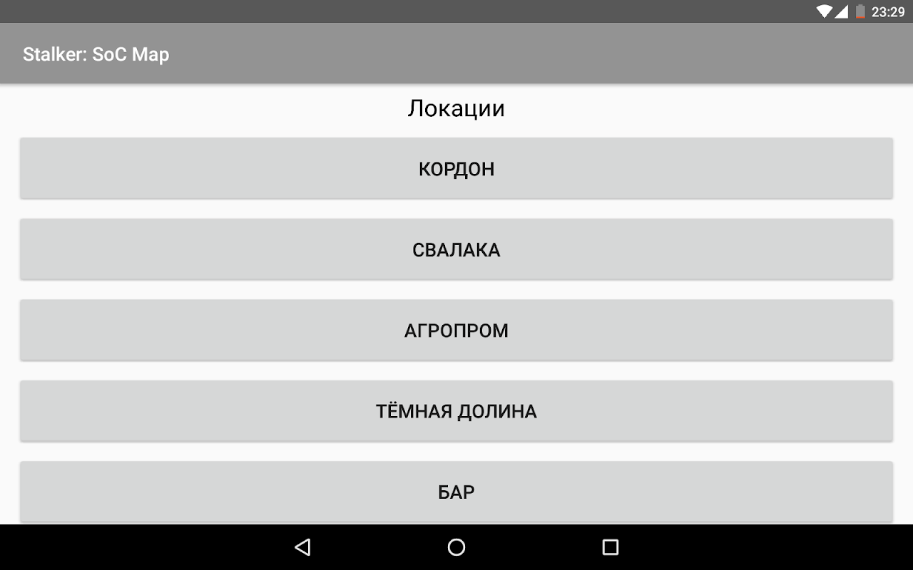 В приложении представлены 11 карт с тайниками. Также в приложении можно узнать содержимое каждого тайника, коснувшись его изображения.