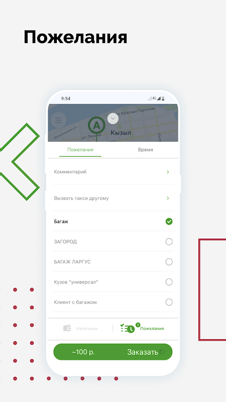 Указывайте дополнительные пожелания к заказу в приложении Такси Апельсин Кызыл.