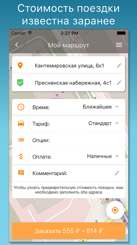 • наличие тарифов «стандарт», «комфорт», «бизнес», «минивэн» (Москва)