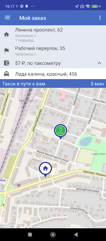 एप्लिकेशन में टैक्सी कार की गति का अनुसरण करें।