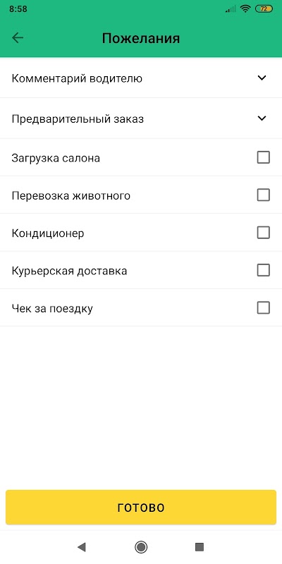टैक्सी सेवाओं की एक पसंद के साथ एक आवेदन, जो एक यात्रा की लागत की तुलना करना और विभिन्न सेवाओं में एक ही समय में एक या अधिक कारों को कॉल करना संभव बनाता है।