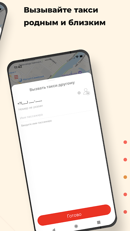 "इच्छाएँ" अनुभाग में "किसी और के लिए टैक्सी बुलाएँ" विकल्प का उपयोग करें और उसका फ़ोन नंबर इंगित करें। जब टैक्सी आएगी, तो निर्दिष्ट नंबर पर एक एसएमएस भेजा जाएगा, और आपको एप्लिकेशन में एक संदेश प्राप्त होगा।