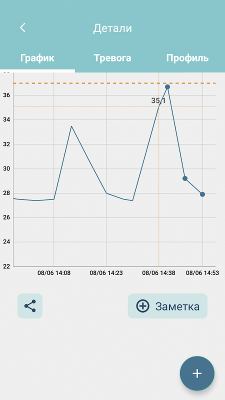 ब्लूटूथ से जुड़े टेम्पिक थर्मोग्राफ का उपयोग करके, ऐप आपको अपने बच्चों के शरीर के तापमान की निगरानी करने और एक अलार्म सेट करने की सुविधा देता है जो तापमान के पूर्व निर्धारित सीमा तक पहुँचने पर बजता है। मापा गया तापमान ऐप में सहेजा जाता है और इसे ग्राफ़ के रूप में देखा जा सकता है। ऐप एक साथ कई थर्मोग्राफ के संचालन का समर्थन करता है।