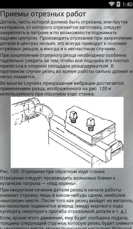 खराद पर काम करने के लिए संबंधित व्यावहारिक और सैद्धांतिक मुद्दों की सीमित जानकारी उपलब्ध कराने के द्वारा नि: शुल्क परीक्षण अनुप्रयोगों। सामग्री पाठ टेबल और चित्र तर्कसंगत तरीके और प्रक्रियाओं के बारे में obrabotki.Izlozheny जानकारी मोड़ और शर्तों को काटने, मोड़ संचालन राशन की तकनीक का संकेत के रूप में कर रहे हैं। बढ़ती उत्पादकता, उपकरण विनिर्देशों, टूलींग और उपकरण विवरण के तरीकों, डेटा बहुत जटिल भागों प्रसंस्करण, आविष्कार और युक्तिकरण के मुद्दों की रूपरेखा। आवेदन खराद की तैयारी के लिए एक गाइड के रूप बनाया गया है और औद्योगिक उद्यमों में व्यक्तिगत और ब्रिगेड प्रशिक्षण के एक नेटवर्क में इस्तेमाल किया जा सकता है।