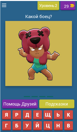 Правила просты: вы угадываете своих любимых бравлеров по картинке из букв, которые надо составить в определенной последовательности, чтобы получилось нужное вам имя. Если затрудняетесь ответить, то всегда можете воспользоваться подсказками!;)