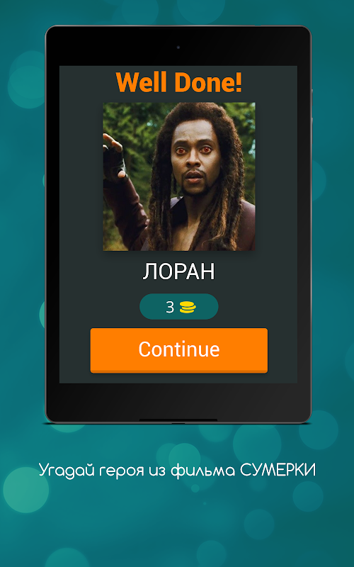 Викторина по всеми известному фильму Сумерки. В которой вам нужно будет угадать героев. В игре взяты не все персонажи. На данный момент 37 уровней. Остальные будут добавляться поэтапно.