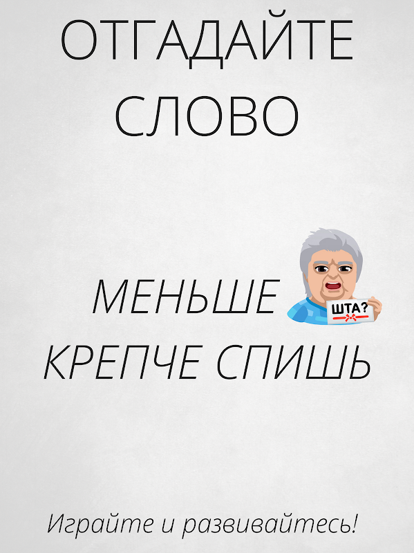 Разработчики предполагают, что пользователь будет расширять кругозор, отгадывая и запоминая поговорки и пословицы. Мы подготовили огромную коллекцию пословиц и поговорок для русскоговорящей аудитории. Вам предстоит серьёзный мозговой штурм, будьте бдительны!