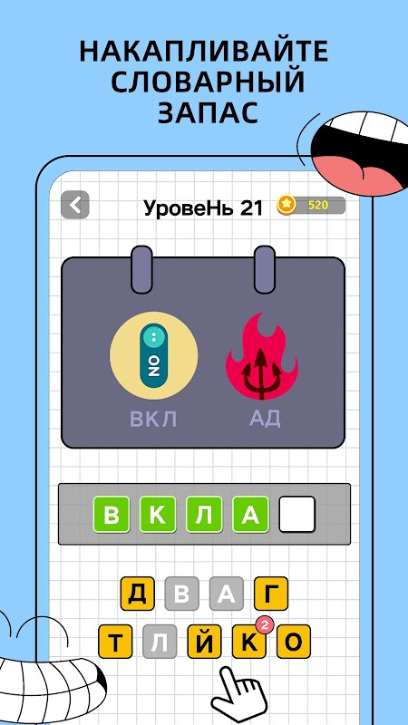 • 4 प्रकार के फ़िलवर्ड आपको शब्द का अनुमान लगाने में मदद करेंगे: अक्षरों से सभी अनिश्चित शब्दों को साफ़ करें, शब्द का यादृच्छिक रूप से अनुमान लगाएं, वर्ड ब्लॉक गेम में फ़िलवर्ड प्रकट करें और कम से कम 3 अक्षर प्रकट करें।