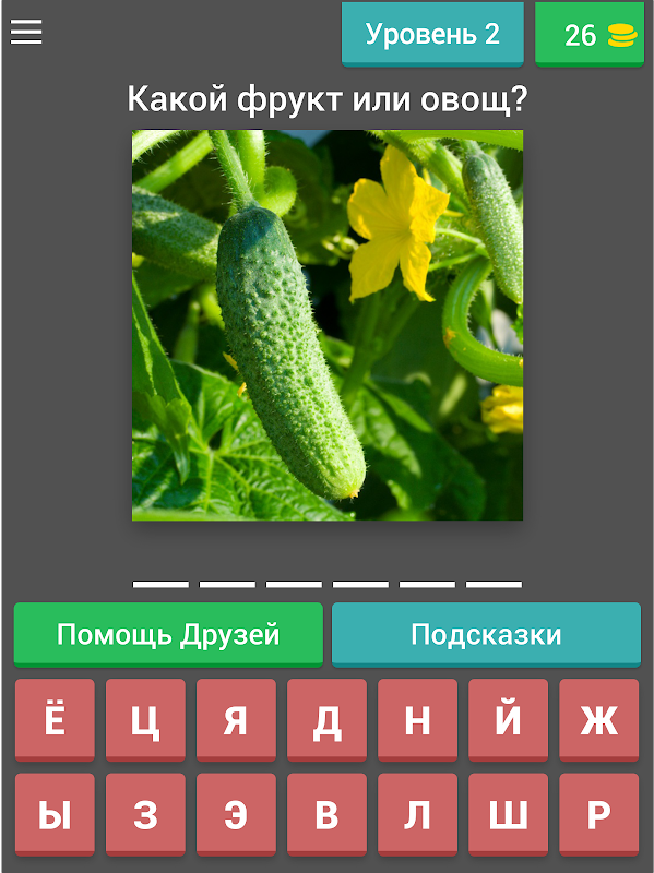 Правила как всегда мега простые: на каждом уровне вам показывается картинка на которой загадан очень знакомый продукт. Это может быть любой фрукт или овощ. Вам нужно из имеющихся букв подставить правильное слово и тем самым пройти уровень!