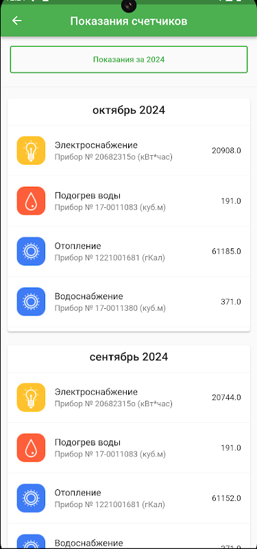 संचयन और भुगतान के इतिहास को सुविधाजनक रूप से देखना। मीटर रीडिंग दर्ज करना।