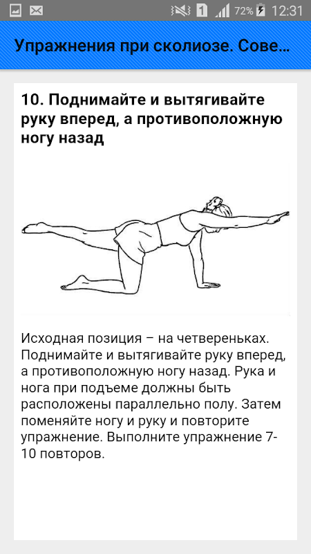 घर पर रीढ़ की स्कोलियोसिस के लिए व्यायाम का एक सेट। टिप्स