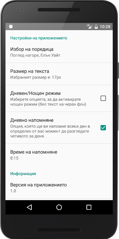 "मॉर्निंग रीड्स" एक ऐसा एप्लिकेशन है जिसमें बाइबल से एक कविता और हर दिन एक छोटी टिप्पणी है।