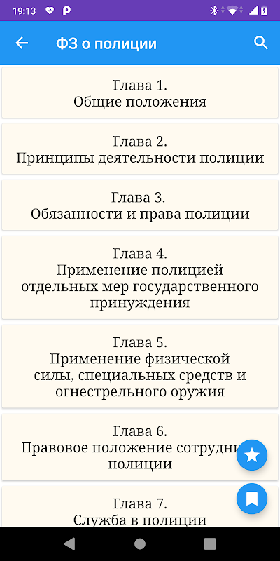 - Добавляйте нужные статьи в список избранное, для быстрого доступа к ним из меню;