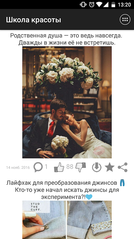 Понравившиеся записи можно комментировать и оценивать. Все понравившиеся картинки можно сохранять в галерее устройства в папке приложения. Ты можешь делиться записями с друзьями через социальные сети Facebook, Вконтакте, Одноклассники, Viber, WhatsApp а так же другие установленные на устройстве приложения. Ну и конечно, ты можешь оставлять лайки и сохранять записи в избранное.