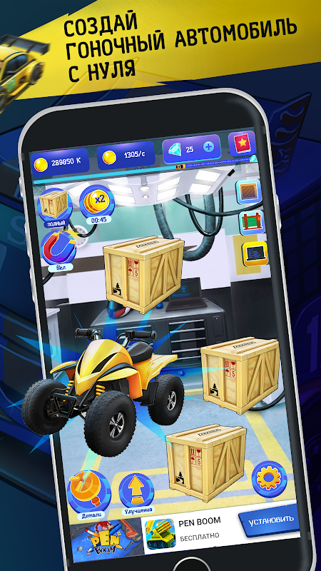 Эволюция тачек — уже в твоём телефоне! Объединяй детали, чтобы получить новый спортивный автомобиль!