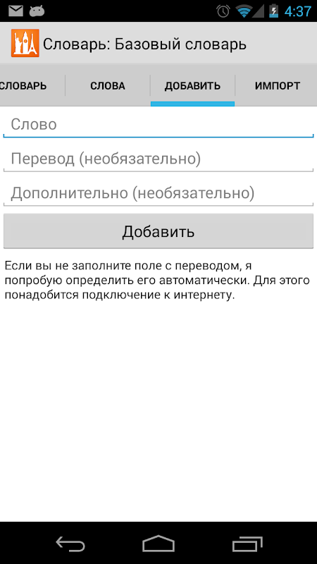 Вы сможете добавлять новые слова не только с вашего устройства, но так же и с помощью специального сайта.