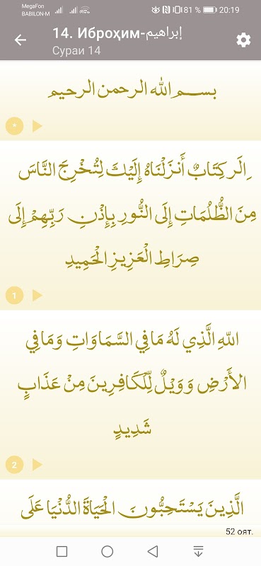 11-उद, 12-यूसुफ, 13-राद, 14-इब्रोहिम, 15-Ҳiҷr, 16-नहल, 17-इसरो, 18-कागफ, 19-मरियम, 20-तोचो, 21-अनबियो, 22-Ҳakҷ, 23- मुमिनीन, 24-नूर, 25-फुरकोन, 26-शुआरो, 27-नमल, 28-कसास, 29-अंकाबुत, 30-रम।