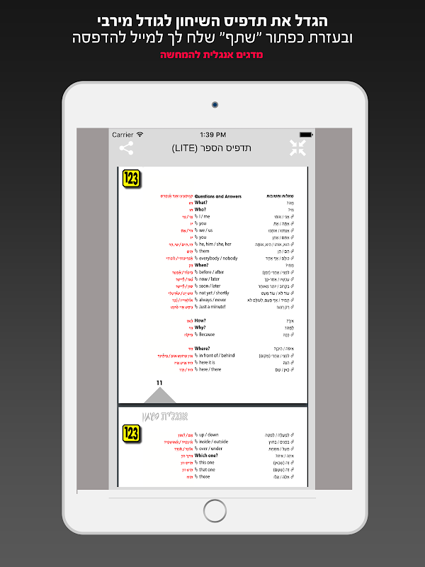 ניתן לשתף את קובץ השיחון המודפס ובכך להדפיס אותו לנוחיותכם.