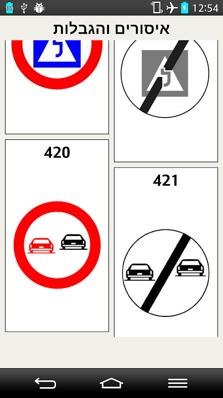इस एप्लिकेशन के विभिन्न निम्नलिखित श्रेणियां में के बारे में 350 सड़क लक्षण है जो सिद्धांत, जांच का सेवन सभी लक्षण भी शामिल है जो एक बोर्ड के संकेत पूर्ण होता है: चेतावनी और चेतावनी, उसके माता पिता, जिस तरह से, रोक और प्रतिबंध है, सार्वजनिक परिवहन, खुफिया और प्रशिक्षण, ट्रैफिक लाइट और नियंत्रण के रास्तों का अधिकार, सड़क पर अंकन कार्य स्थल और प्रतीकों।