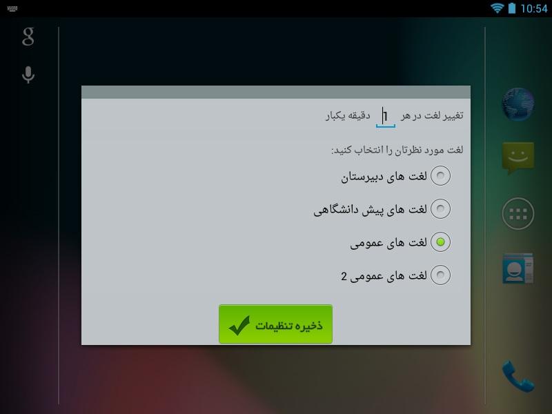 دارا بودن ویجت برای نمایش لغت و معنی در صفحه اصلی