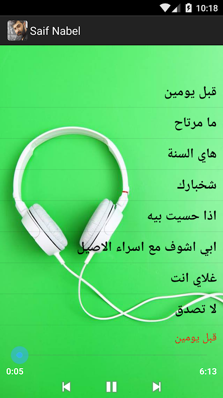 में एमपी 3 प्रारूप सैफ Nabel आवेदन आप सभी गाने सुन सकते हैं और उच्च गुणवत्ता वाले ध्वनि।