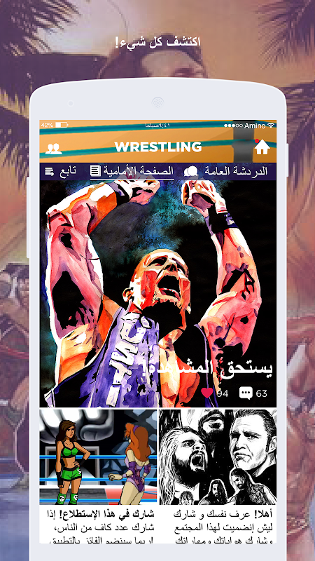 هذا التطبيق لمحبي المصارعة! انضموا لأكثر شبكة إجتماعية سريعة النمو على الجوال فقط لمحبين المصارعة! تعلموا استراتيجيات جديدة، تكلموا مع