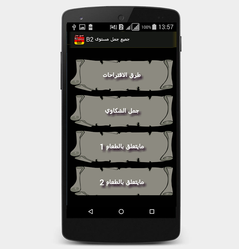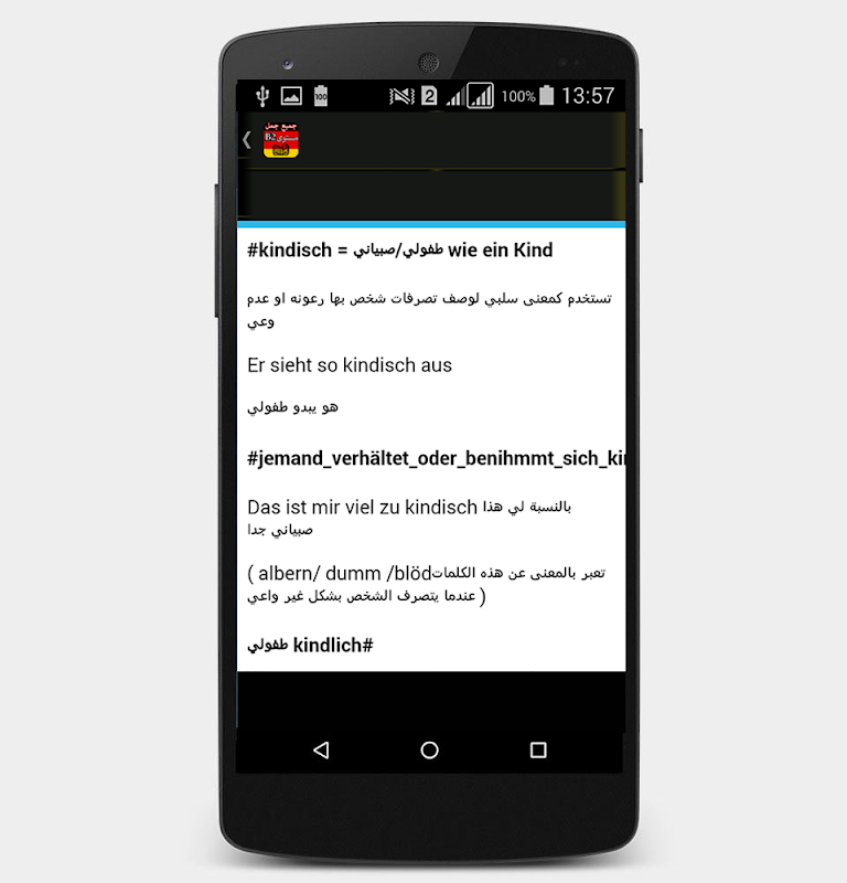 هذا التطبيق سيساعدك في تعلم اللغة الألمانية خاصة جميع أفعال B2 للغة الالمانية التطبيق فيه جميع أفعال B2 مع الجمل مترجم باللغة العربية.