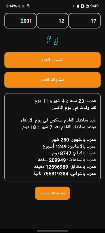 इस एप्लिकेशन के साथ आसानी से अपनी जन्मतिथि से अपनी आयु की गणना करें। बस अपनी जन्मतिथि लिखें