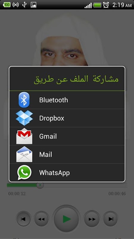 إمكانية مشاركة أي سورة عن طريق البلوتوث أو البريد الالكتروني او الواتس اب وغيره.