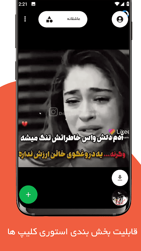 این برنامه کاملا رایگان برای جوانان میباشد که در آن کلیپ ها در بخش های عاشقانه غمگین، سنگین، بی وفایی ، مذهبی و غیره میباشد