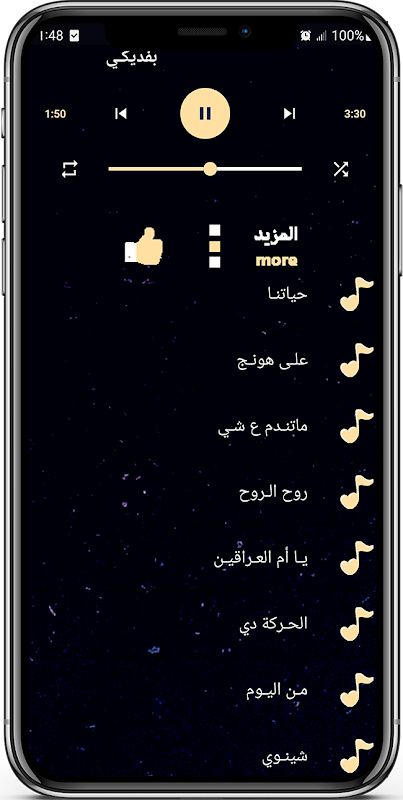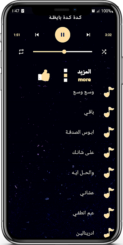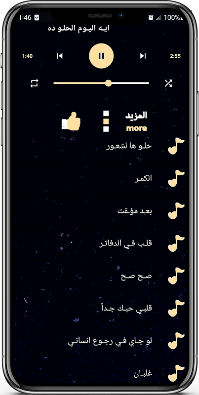 ✔ خاصية الاستماع الى الاغاني العربية واستخدام تطبيقاتك الاخرئ بكل سلاسة