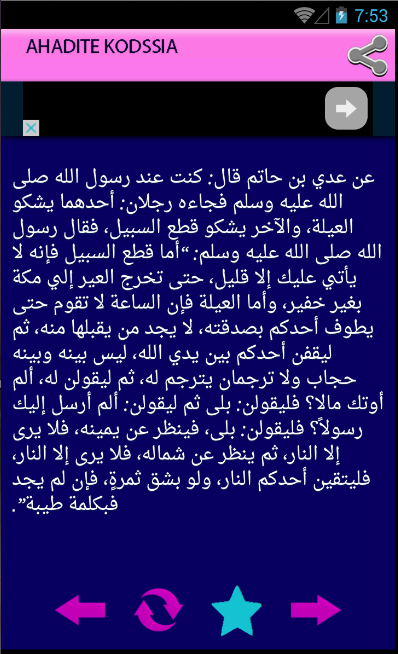Is a program which combines sacred chatter over 200 Hadith Qudsi is true of chats easily use Almroahoeetmaz addition to beautiful and simple interfaces for ease of reading, as it is designed to fit all devices.