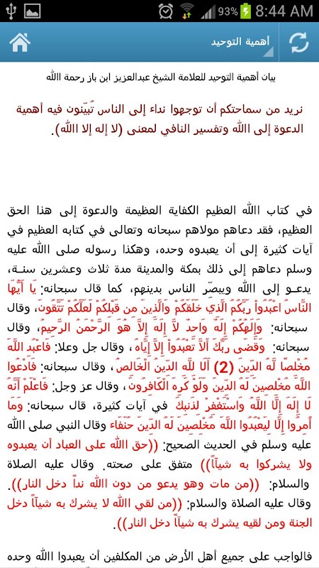 متن الاصول الثلاثة او الثلاثة الاصول للشيخ المجدد محمد بن عبدالوهاب التميمي و نصي قابل للقراءة من الهاتف مباشرة وملون
