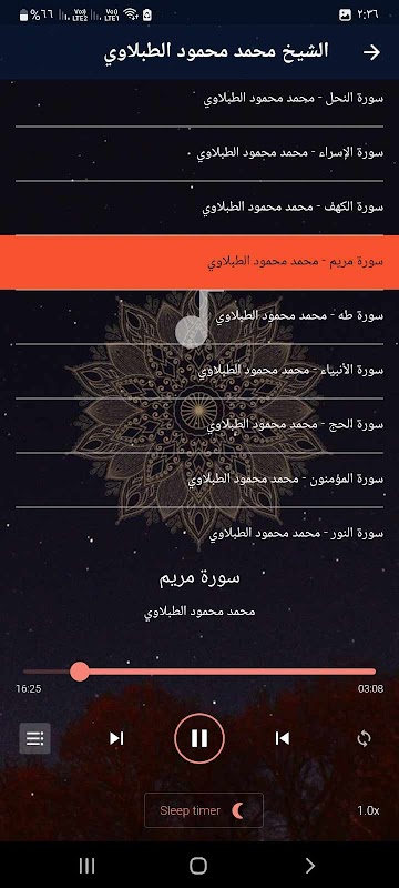एप्लिकेशन आपको रुकने के लिए अपनी पसंद का टाइमर सेट करने की अनुमति देता है, जहां आप एक विशिष्ट अवधि चुन सकते हैं जिसके बाद ऑडियो प्लेयर बजना बंद हो जाएगा और आपके हस्तक्षेप की आवश्यकता के बिना ध्वनि स्वचालित रूप से बंद हो जाएगी। इससे सोने और खेलने में मदद मिलती है पवित्र कुरान की ध्वनियाँ ताकि आप शांति और शांति से सो सकें।