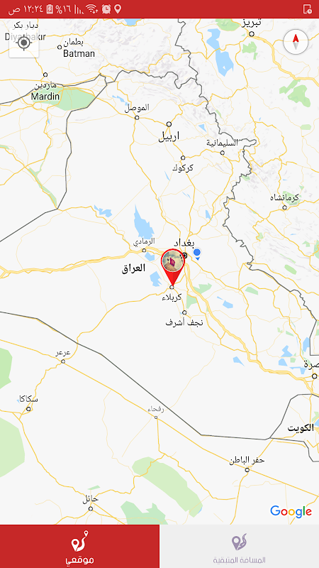 خارطة خاصة بموقعك الجغرافي وموقع كربلاء المقدسة